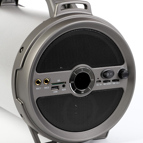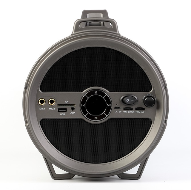 Зручний ремінець допоможе з комфортом носити колонку із собою. Може працювати як від акумулятора, так і від мережі. Кнопки керування й роз'єми розташовані на одному з торців аксесуара. У пристрої є стандартний роз'єм AUX, micro-usb і слот TF для карт пам'яті. У колонку вбудоване FM-радіо.