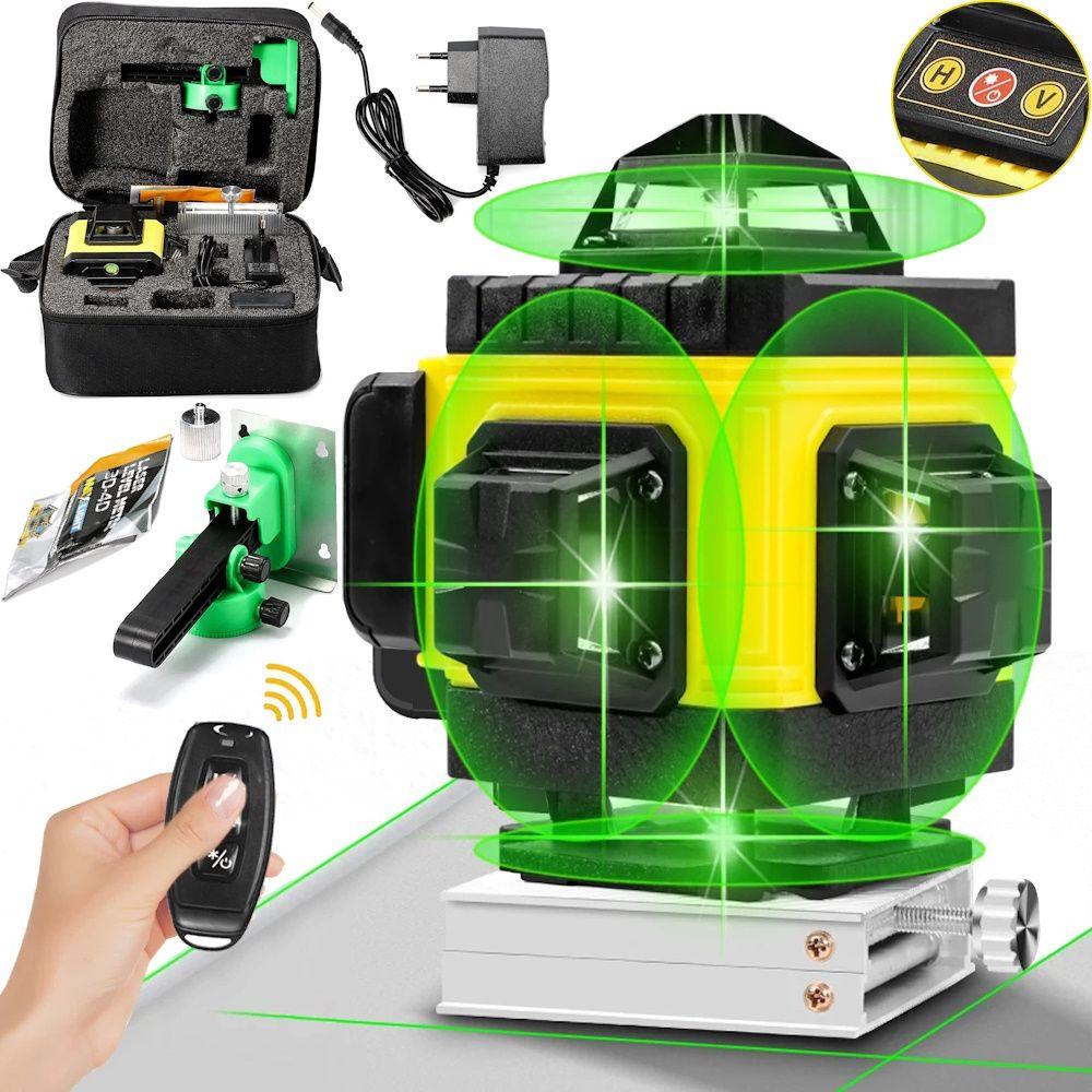 Лазерний 4D 16-лінійний зелений рівень, самовирівнювальний інструмент для вимірювання перетину ліній на 360