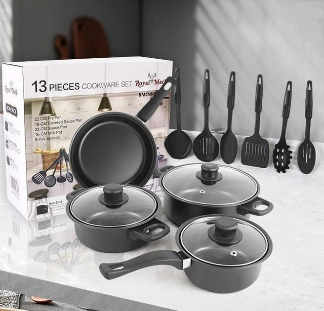 Каструлі набір з 13 предметів, антипригарні каструлі та сковороди LY-381, Кухонний набір посуду Royal Mark
